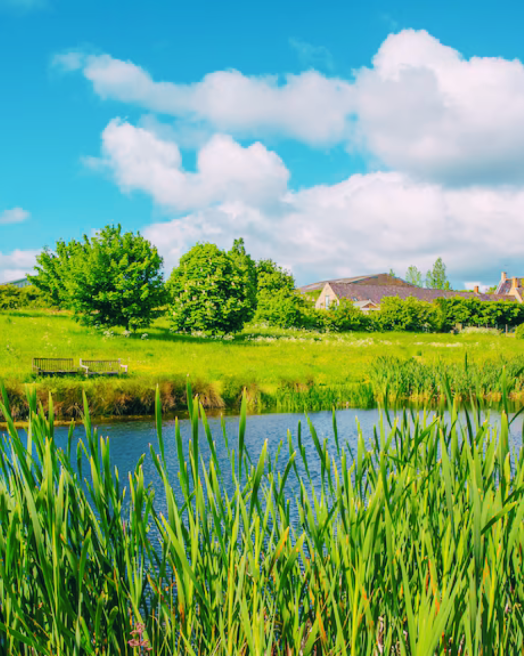 There is a lake, open gardens and space to walk freely in nature. A fire pit area provides a place to sit outdoors and the surrounding land invites a slower, more grounded pace.